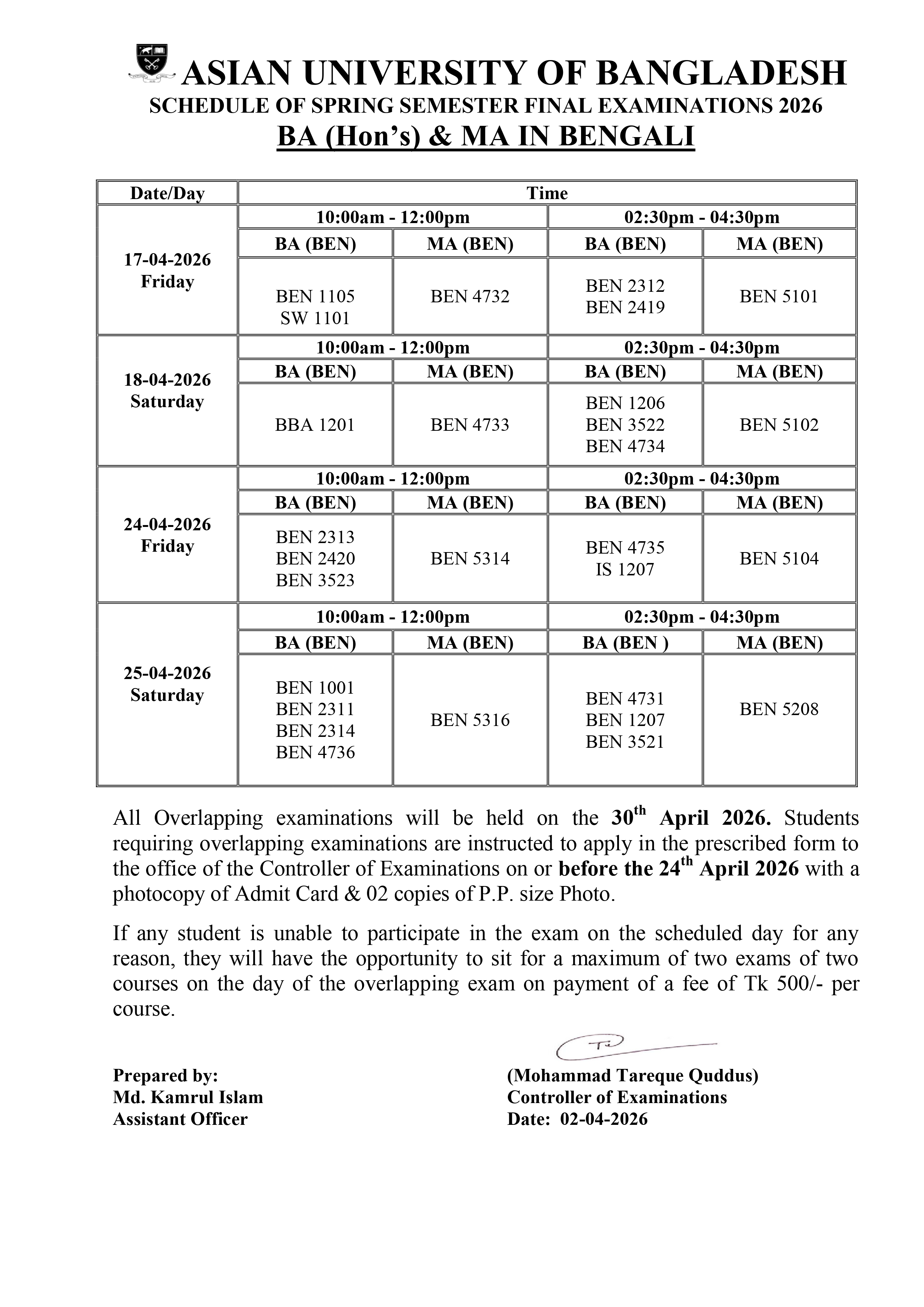 • AUB Admission is ongoing for Summer - 2026 (May to August)  | To Apply Click Here4th AUB International Conference on Good Governance, Justice and Ethical Leadership (08 - 09 May 2026) | For details - Click Here,   *** www.aub.ac.bd is our only website. All other websites in the name of AUB are fake. So everyone is warned not to be deceived.